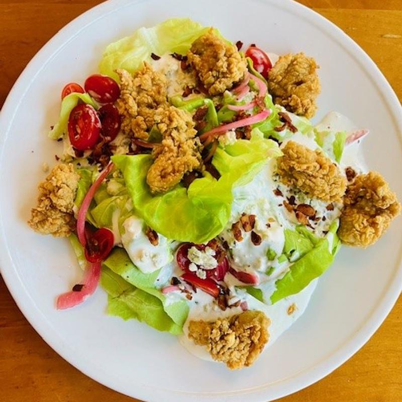fried oysters, bibb lettuce, bacon, pickled red onion, tomato, gorgonzola, buttermilk dressing