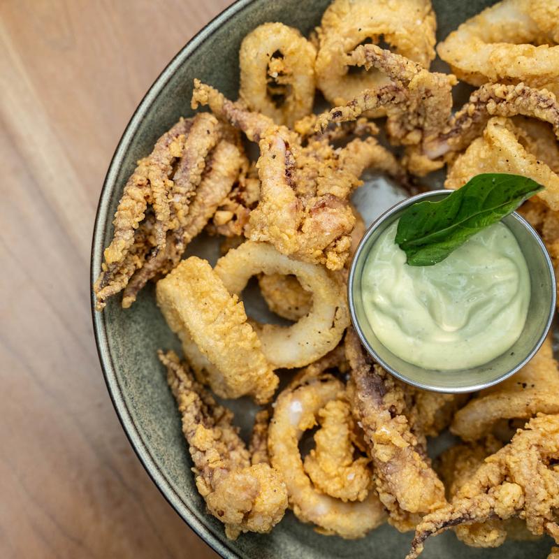 lightly breaded, deep fried, side of basil aioli